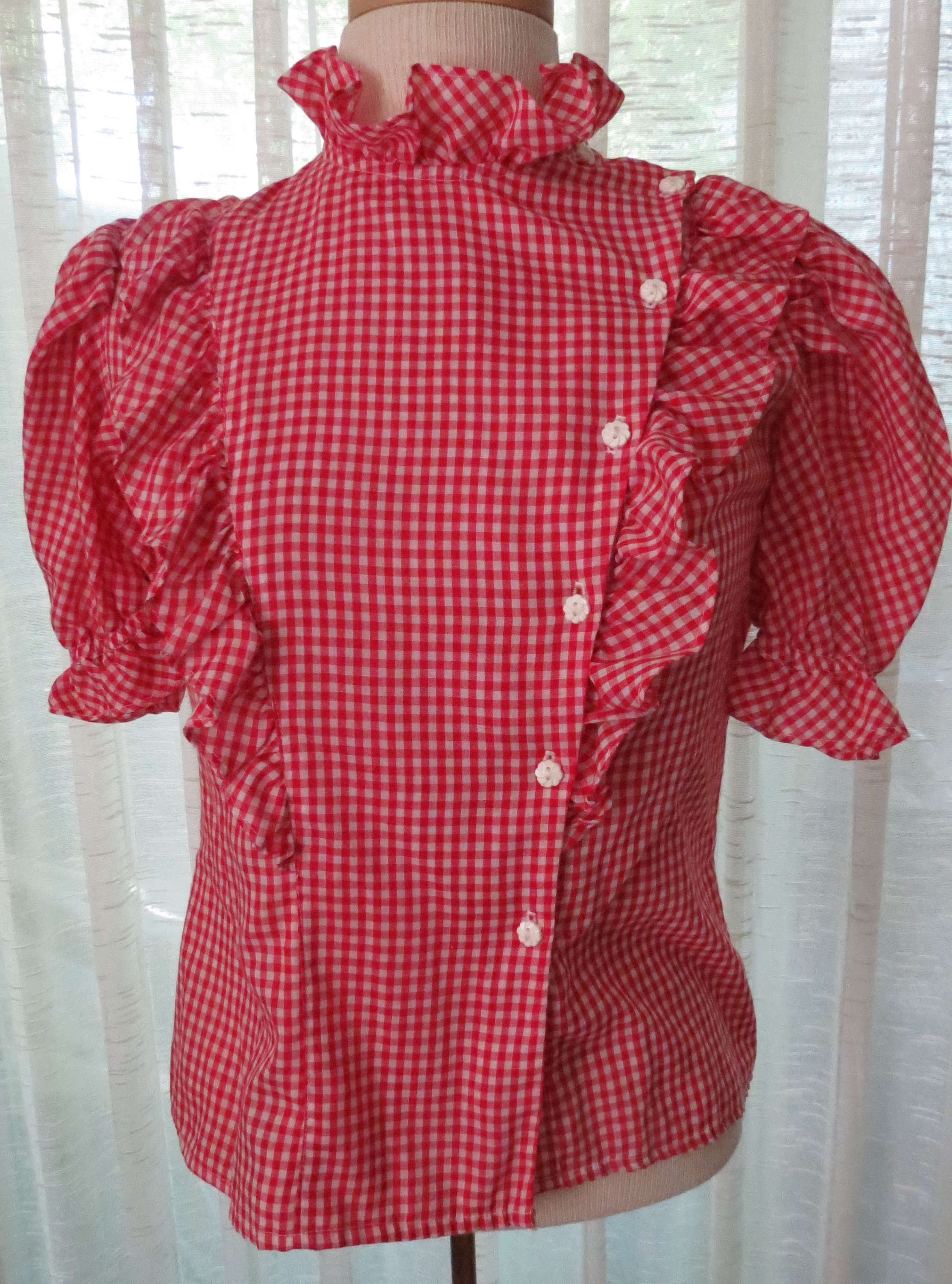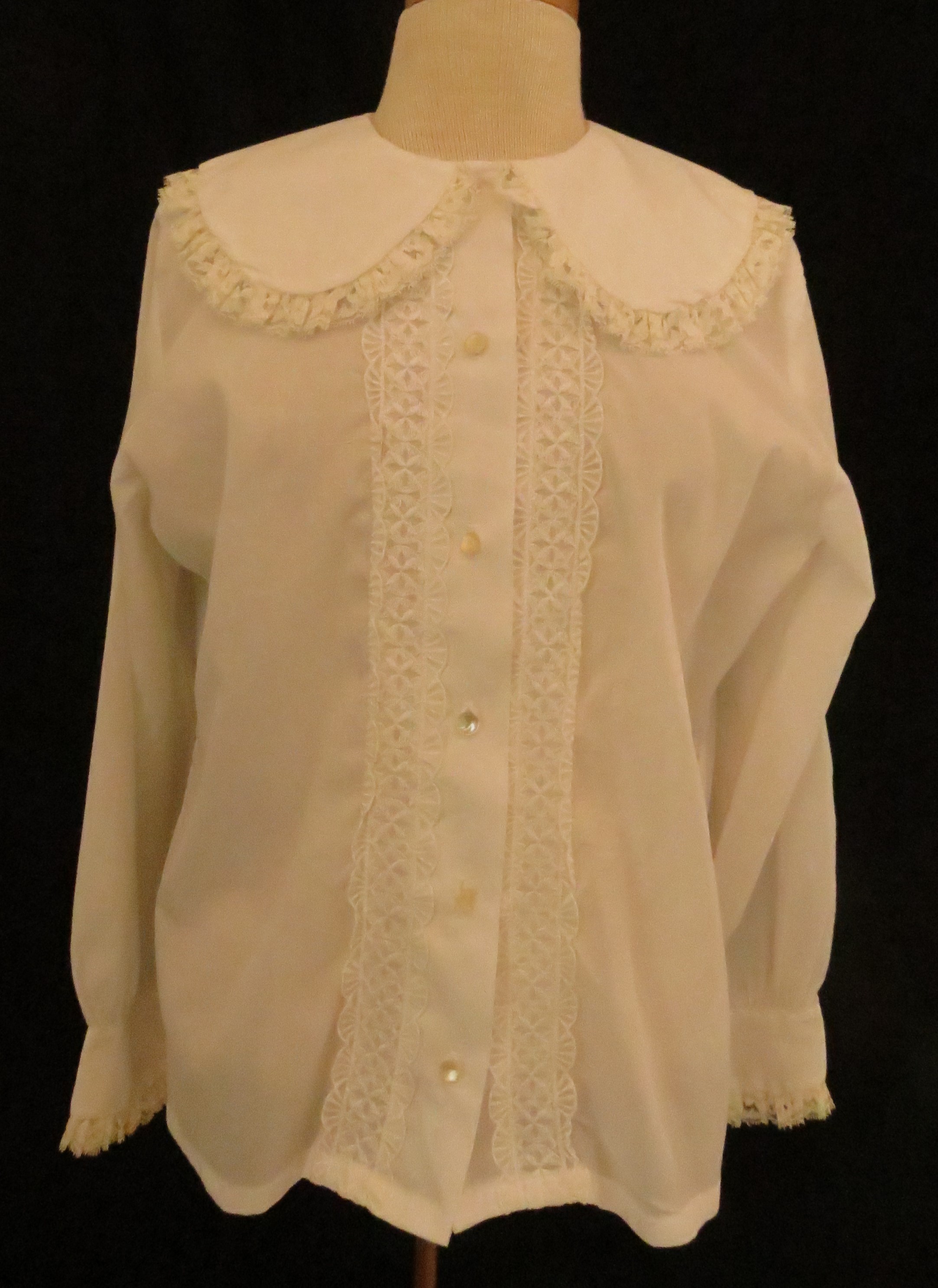 Here are two of my oldest women’s blouses and two of the most interesting. What more can I say about the blue one? Not sure if it was home-tailored by a creative and fashion-forward gal, but I think so. Perfectly unique and attention-grabbing. What fun! Love it!!