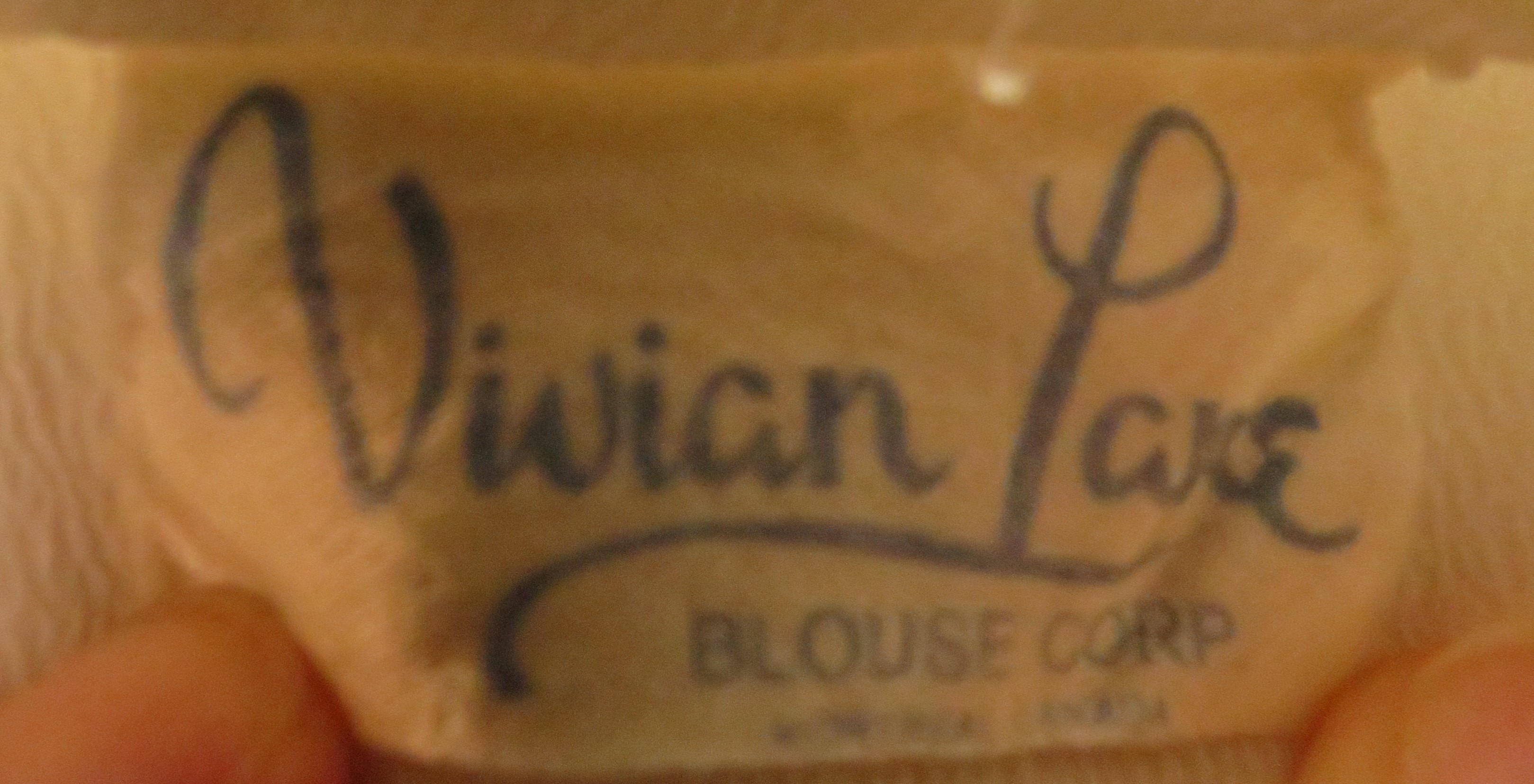 The second blouse is from about the same time frame, but much more classic. You can see from the label that it was commercially-made and the Sanforized cotton designation puts it squarely after 1930. The Sailor collar styling was really popular for children beginning in the 1800’s, or before, but became a “thing” in women’s fashion especially in the years surrounding major wars, as did other types of military-inspired styling. It’s a classic sportswear item from the mid-century and could have been worn with a skirt, too, when women rarely wore pants or shorts.