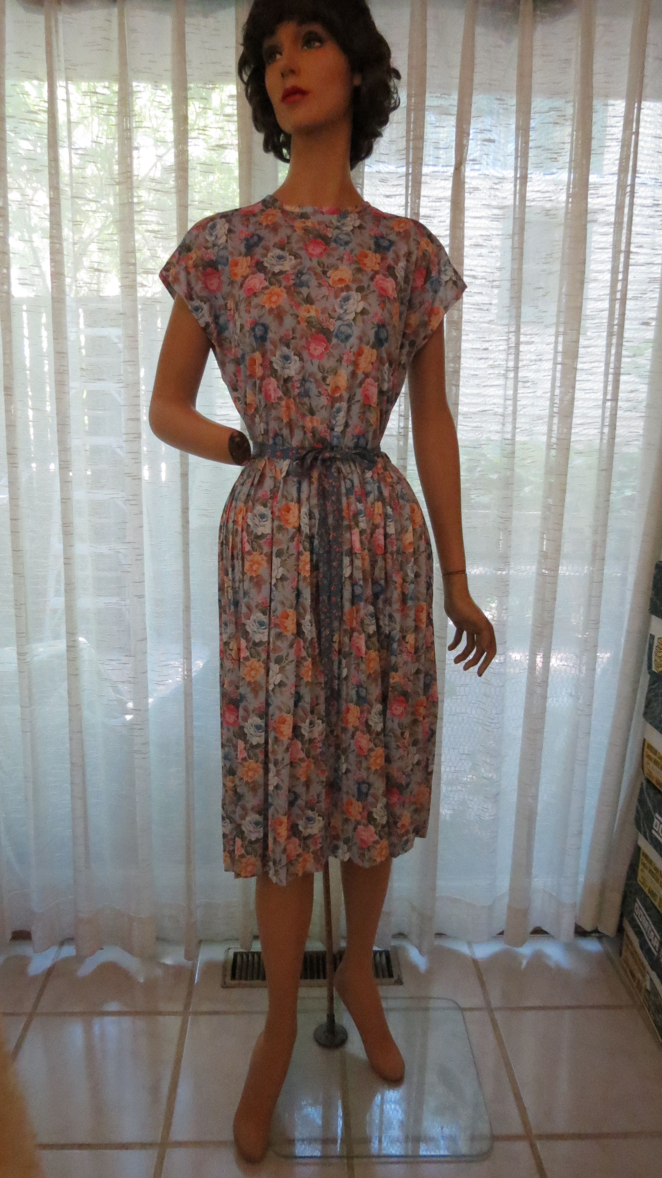 Several years ago, I found my first one – fashioned by the Lady Carol brand – and it is made almost identically to the flowered one here, in a brown and white print knit fabric and was pictured on a previous post.