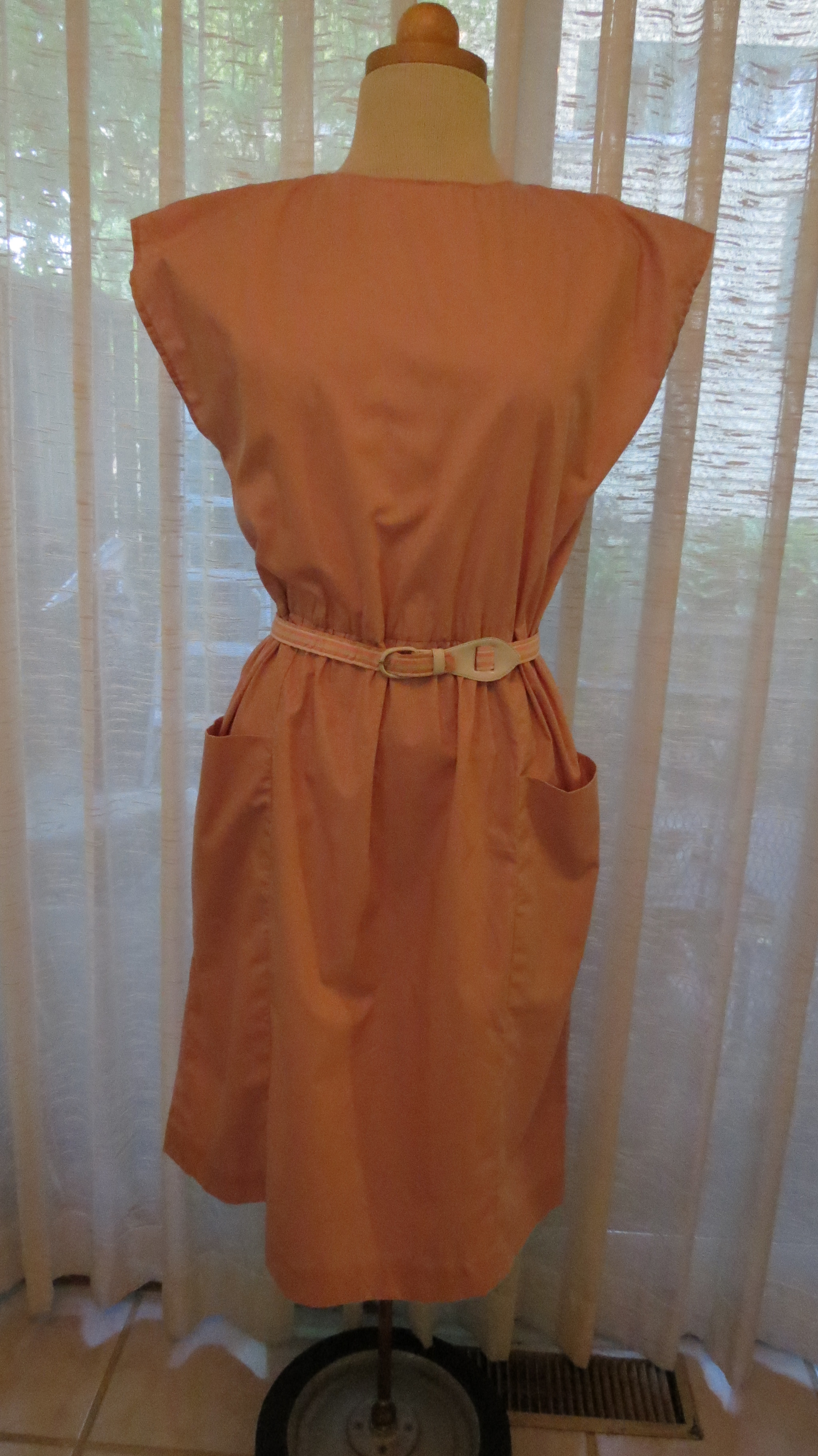 These two were custom-tailored. The floral one is a knit and the pink one with pockets is woven cotton blend. All have elasticized waists and cap sleeves. Would be dead simple to make today.