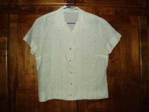 LOVE these soft, almost-sheer cotton blend fabrics that were used for little everyday blouses in the Fifties and early Sixties! This cute little number has very pretty machine embroidery all down the front.