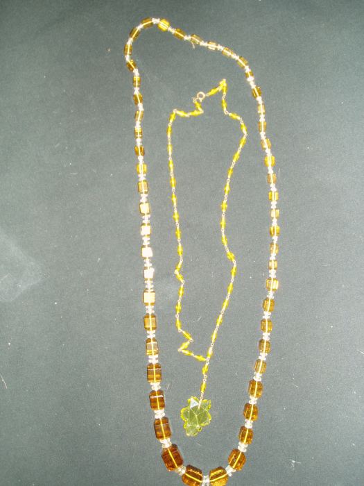 Staying in the early 20th Century for a brief while, here are two costume bead necklaces from the 1920’s. Longer length, which was popular then, twirling and bouncing down the front of ladies…