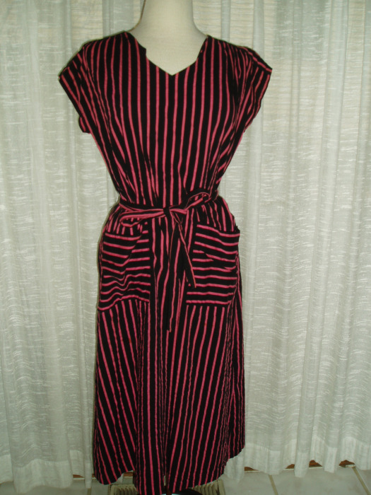 Some of you may remember that I have several day dresses made in this wrap style, but this one is distinctive. It was made by (or modeled after one made by) a clothing company in the 1940’s…
