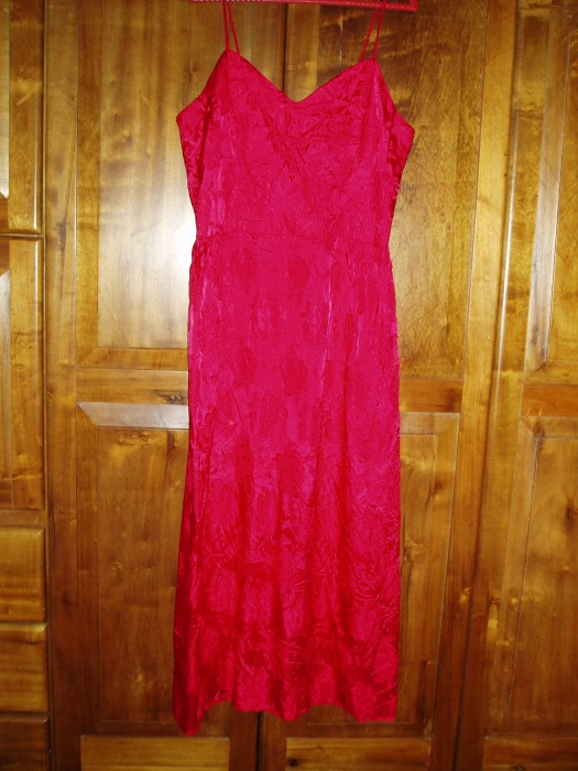 Here’s the perfect dress to pair up with those lipstick-red stilettos that I posted yesterday. Silver or gold leather sandals would work nicely, too. It’s made for dancing, with a skirt…