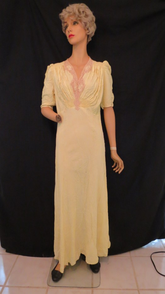 Just had to re-photograph this lovely rayon gown from Paris in order to show it off properly. I’ll do a couple more with my recent wedding gown finds. It’s from somewhere between 1920 …