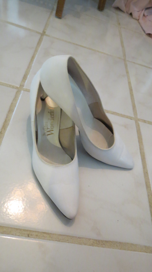 OMG – pure white true vintage shoes are so rare, and especially in such good condition. Miss Wonderful (and they are) made these lovely full leather pumps back in the Kennedy era, early 1960…