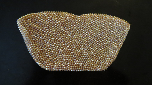 I have lots of mid-century beaded bags but this one’s a bit older and I especially like the shape of it, soooooo . . . . . . . . . . . . of course I had to pick it up. This iridescent beige/…