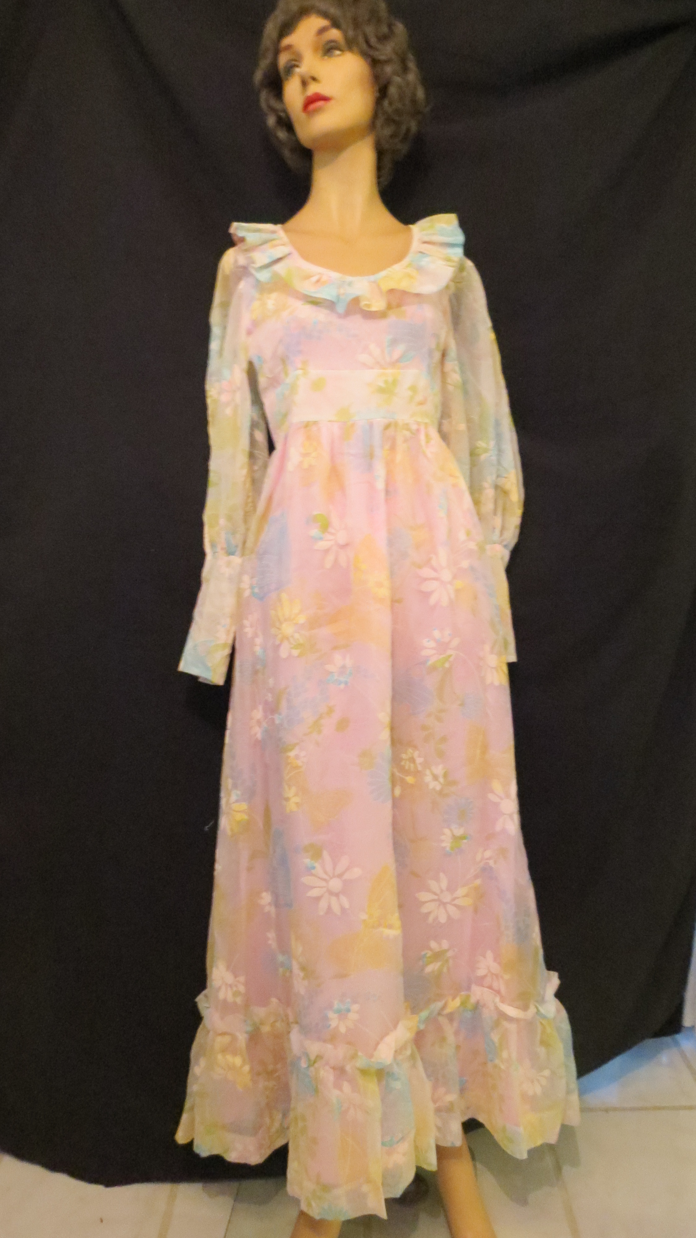 Published March 15, 2017 at 2248 × 4000 in FUN, FUN, FUN! EDWARDIAN-STYLE FLOWER POWER VINTAGE PROM DRESS FROM THE 1960’S