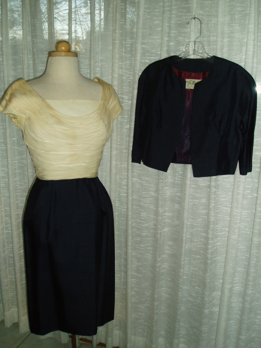 True vintage from the 1950’s, this one was not made for a lunch date at the local diner. We’re in to Spring-weight fabric here, but black and white is always season-less (or is it dark…