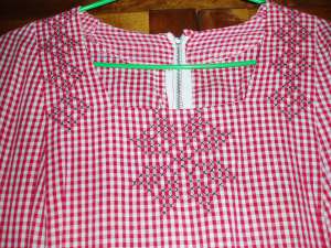 Gingham again – it’s always classic and often found in lots of casual clothing from mid-century. In this example, we have a custom-tailored design – sort of Western-wear, but …