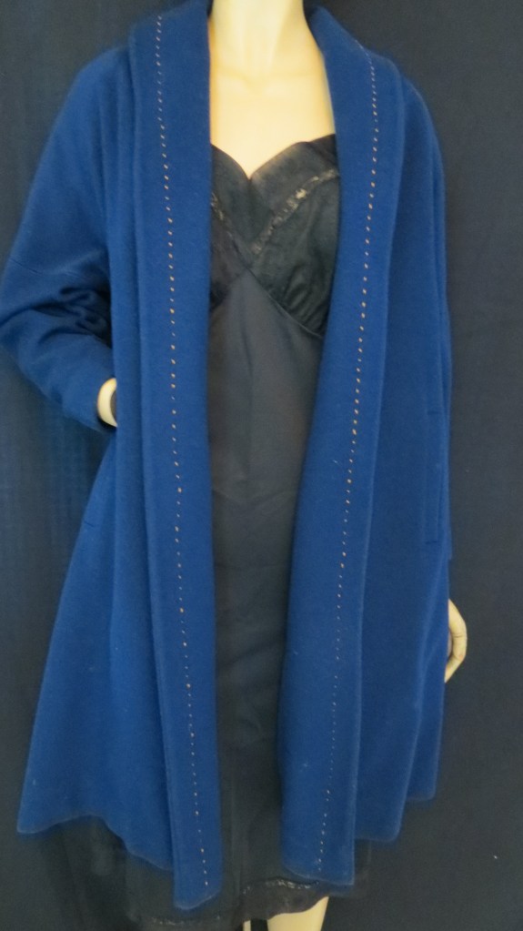 Garment designers and workers did their tailoring best with great success. As always, our ability to rise to the occasion with ingenuity produced a garment that served the need in iconic style. What you don’t see in these photos is some interesting seaming on the shoulders and a beautiful silky lining. Another fave . . . . . . . . . . . . . . . . . . . . . . . . . . . . . . . . . . . . . . . . . . . . . . . . . . . .