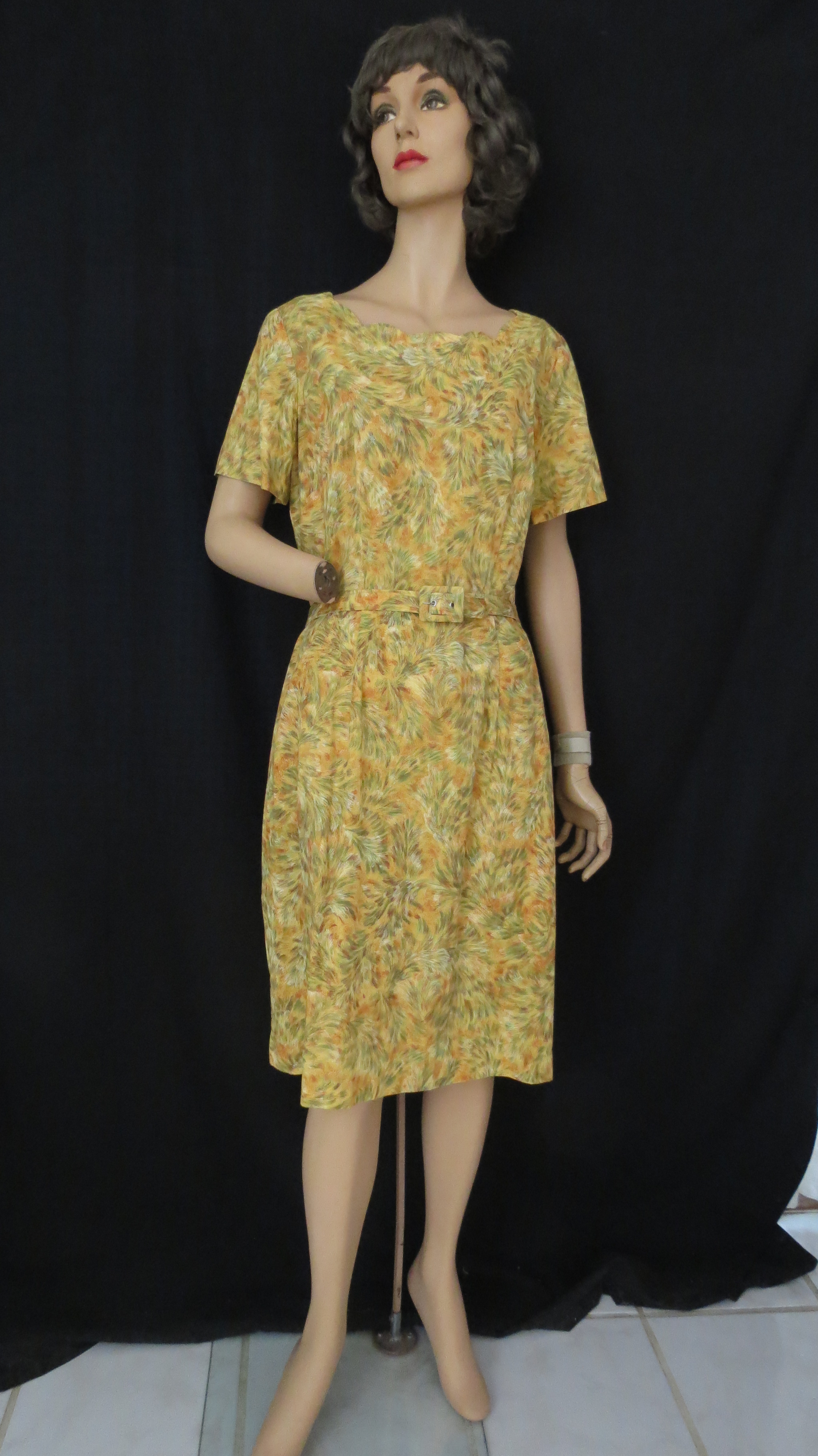 Here we have something entirely different from the ethnic-inspired Southwestern classic shown yesterday. These dresses above could be found in the closet of almost any career gal or housewife in the early 1960’s. The two on the left were sold by Montgomery Ward and Sears & Roebuck, where many, many women bought their everyday clothing. The dress on the right has a more elevated pedigree though still probably from humble beginnings. It was custom-tailored by an exceptionally-talented seamstress from a more elegant pattern. Whether our heroine constructed this frock in her own home or hired the job out to a local dressmaker, it still carries on the practice of making one’s own (and family’s) wardrobe which was very common at that time.