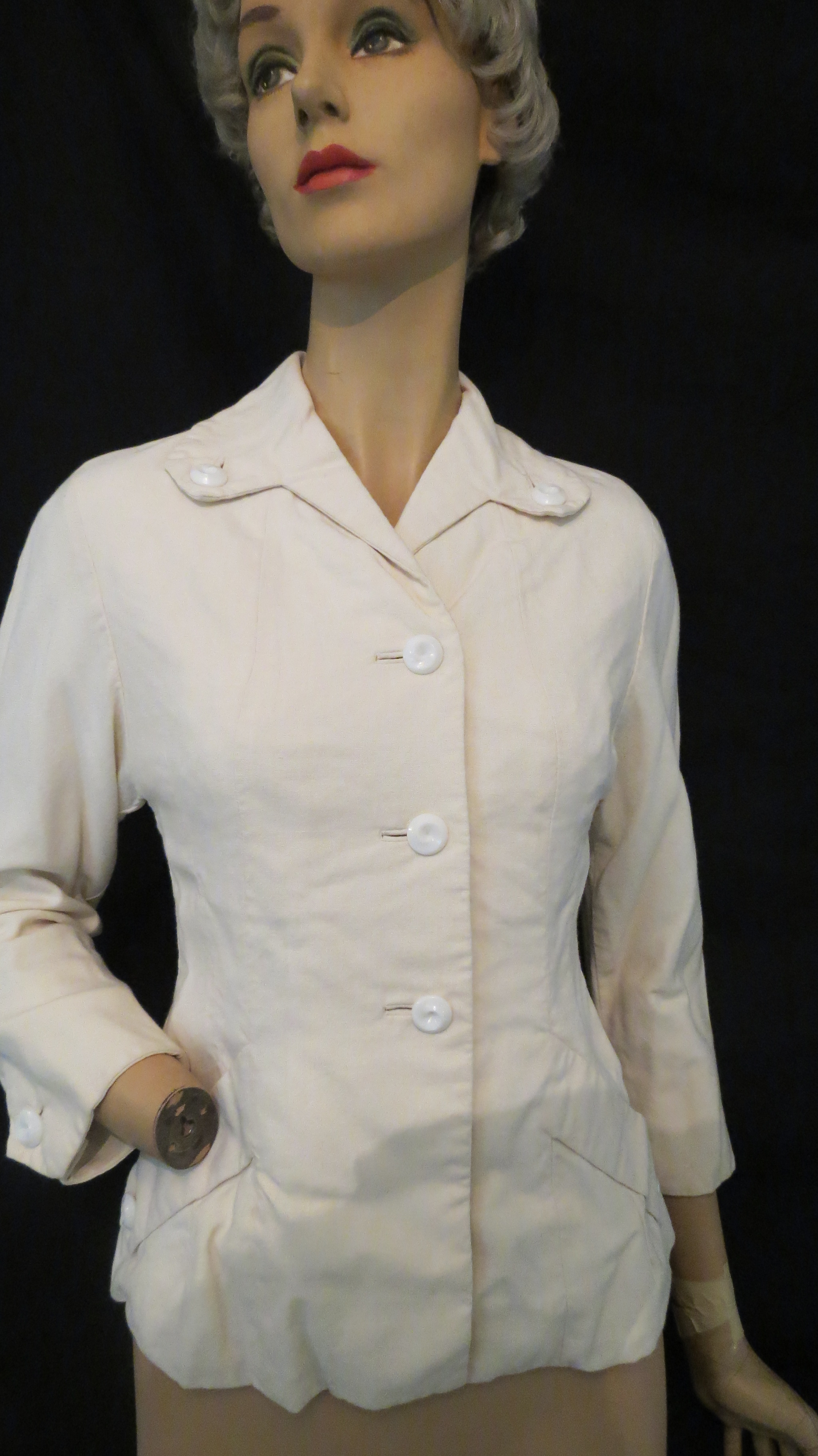 Oh, the tailoring details! Decorative buttons, finished buttonholes, little fabric tabs on cuffs and pockets. To die for. Of course, it’s fully-lined. No label, so I’m not sure if this piece was purchased from a tailor or if the original owner removed the label, which so often happened.