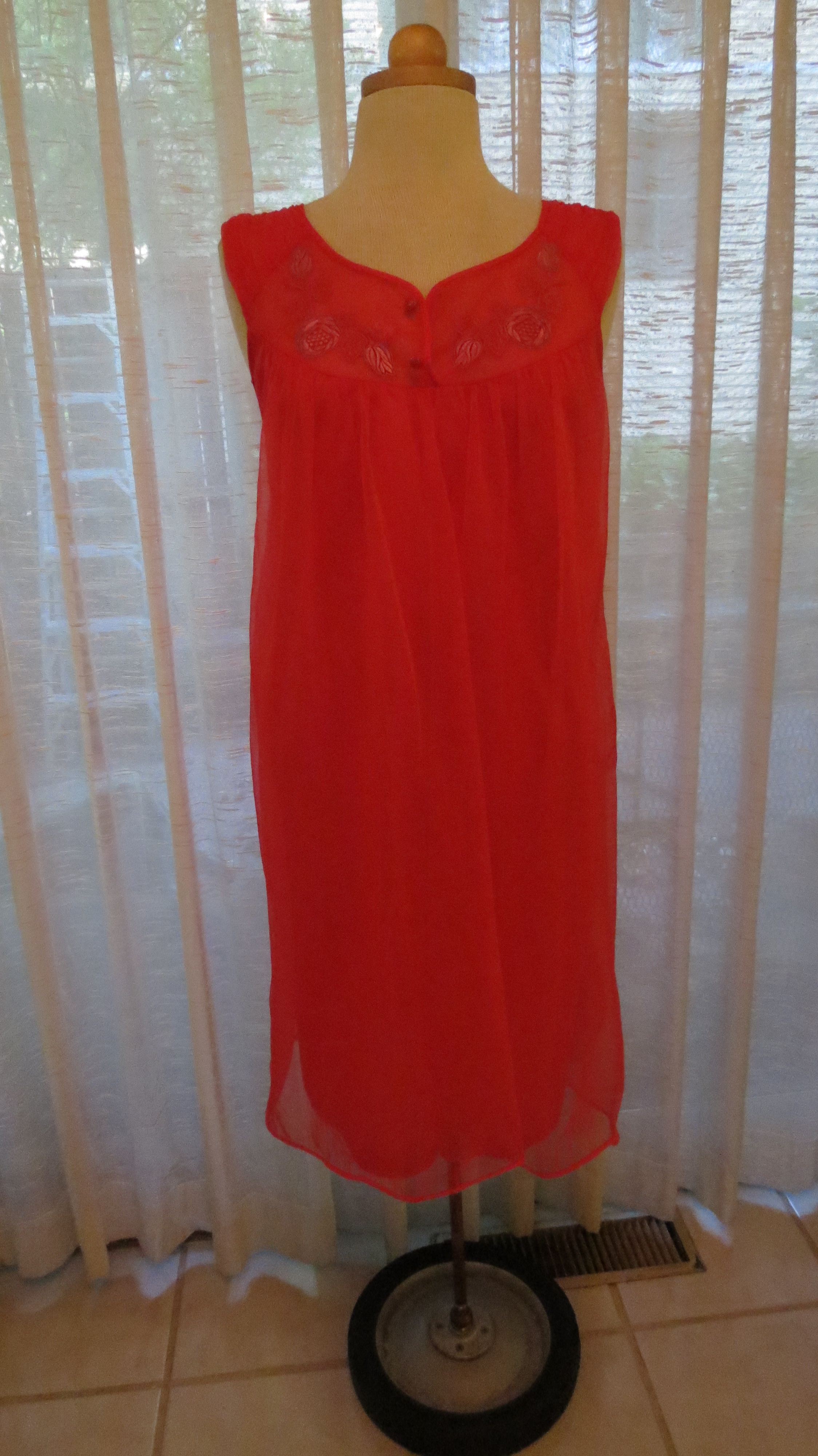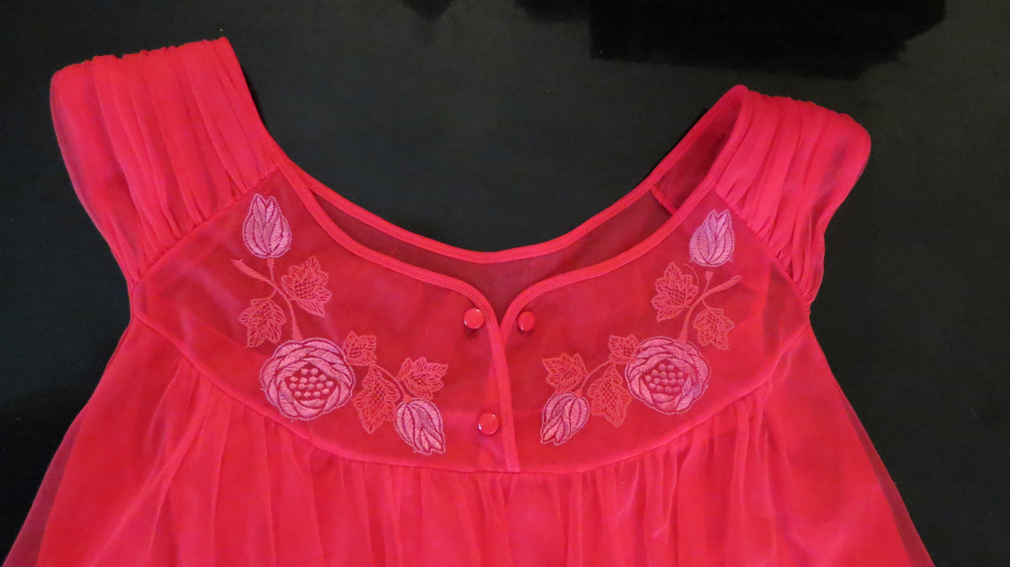 What could be more comfy than a 1980’s does 1940’s cotton flannel jumpsuit in a classic lumberjack weave? I just love this, shoulder pads and all! In a warmer clime, a ruby red negligee’ from the Fifties to early Sixties is perfect and I’ve never found a prettier one than this. As the sun settles out of sight, the temps do tend to cool and this 1970’s Vanity Fair plush robe will do the trick. I love having snuggly true vintage at-home wear for every season and occasion.