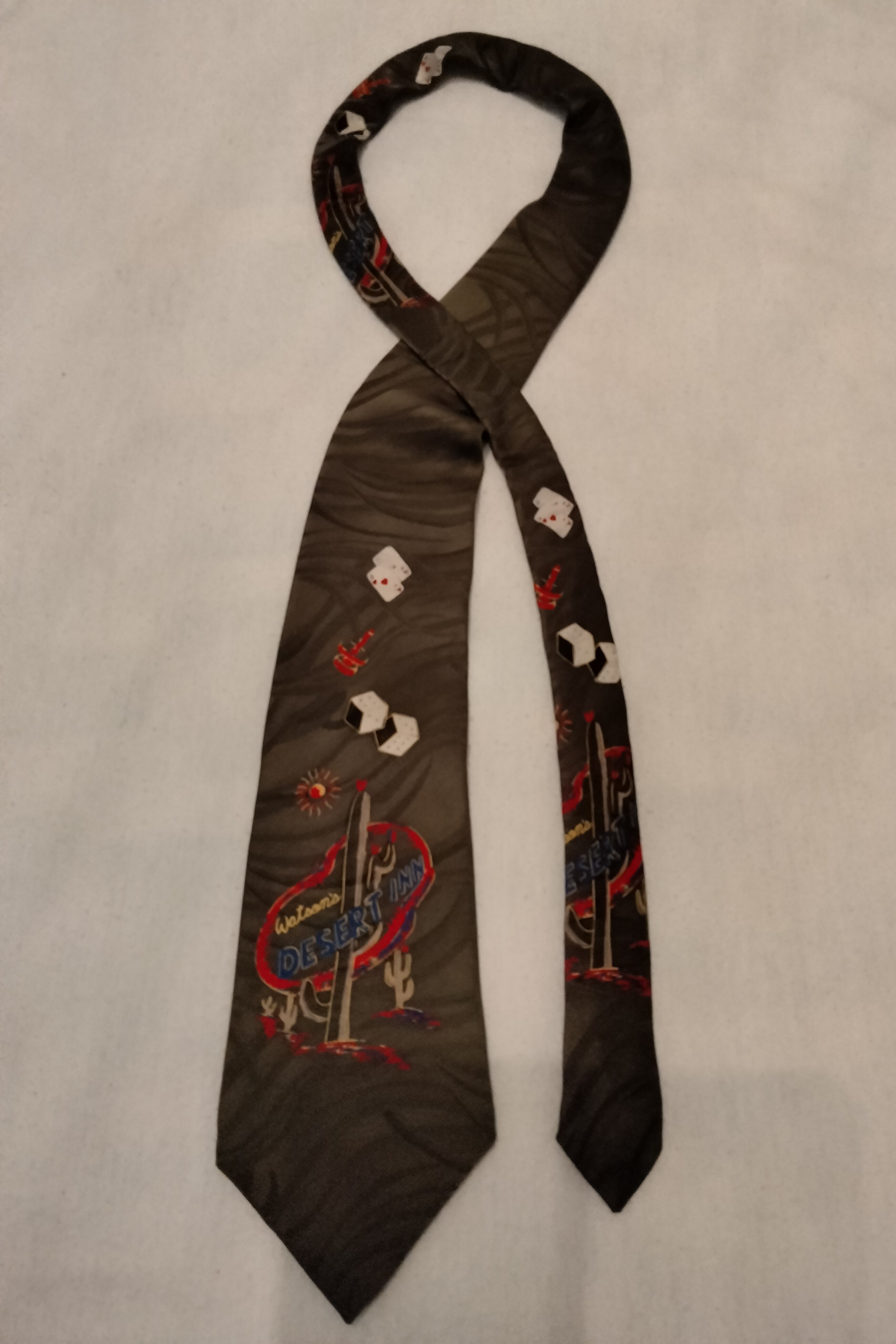 For a menswear outfit, a true vintage necktie is key. I especially love the mid-century graphics. Some 1940’s ties are truly spectacular and the only example I have of this style is a 1970’s/’80’s souvenir tie from Watson’s Desert Inn in the Canary Islands.