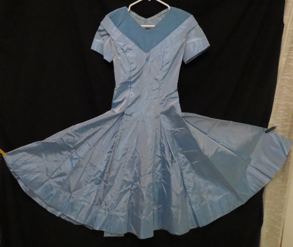 I think it was made for a teen or a very tiny woman, but who knows the real story. Might even have been a Prom dress – good style for Swing dancing ad Jitterbug. What a fun find! Stay tuned for more knee length and midi cocktail frocks as well as full length gowns . . .. . . . . . . . . . . . .