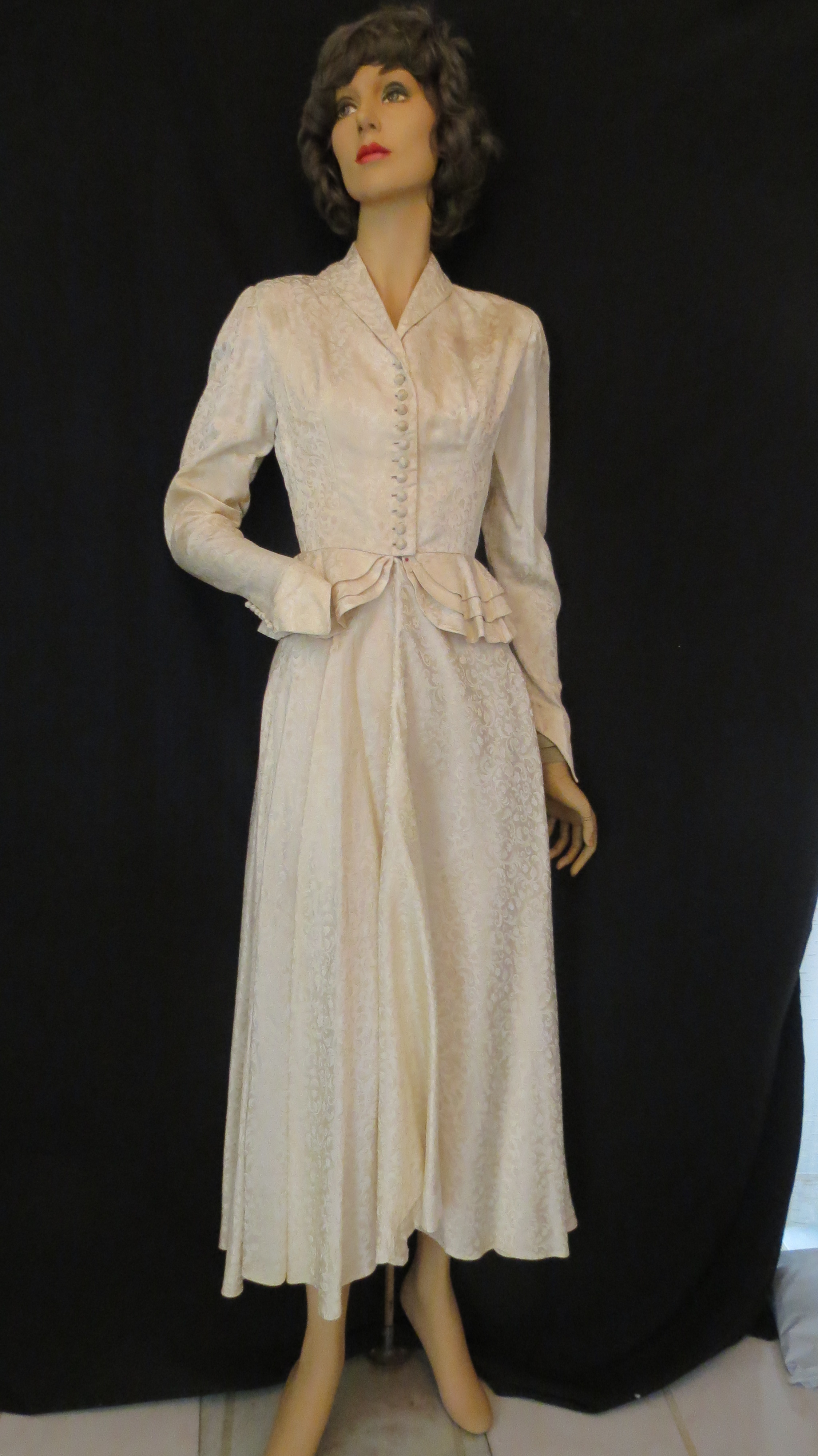 Back to my Australian find – I found the best photo and description of this gown and Stella shows it off properly. I gasped when I discovered it. It may even have been a wedding gown back in the Depression and World War days of the 1930’s and 1940’s when they were often simpler. But, I suppose they had the equivalent of “debutantes” in that society, too. The custom of showing off young, marriageable women “of good family background” was a widespread practice that still persists in some places.