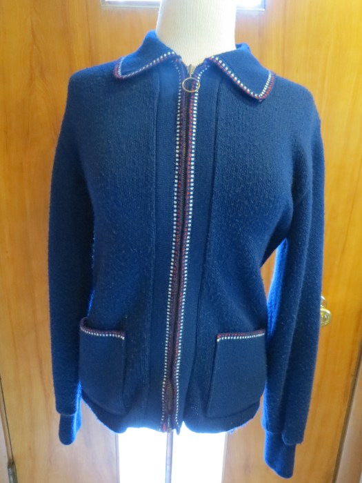This is a great true vintage jacket that I love. It is unlined, so I can start wearing it now in the evenings.