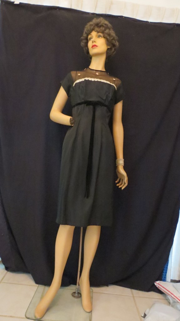 Gowns by Alyce are always so beautiful.. Many for sale are newer than this one, but I love the fabrics and tailoring detail on the older versions. The bodice has boning and lovely beading. The skirt is swishy with two layers. It would be a keeper but, alas, is too large for me (and for Stella, too) so it’s time to pass it on.