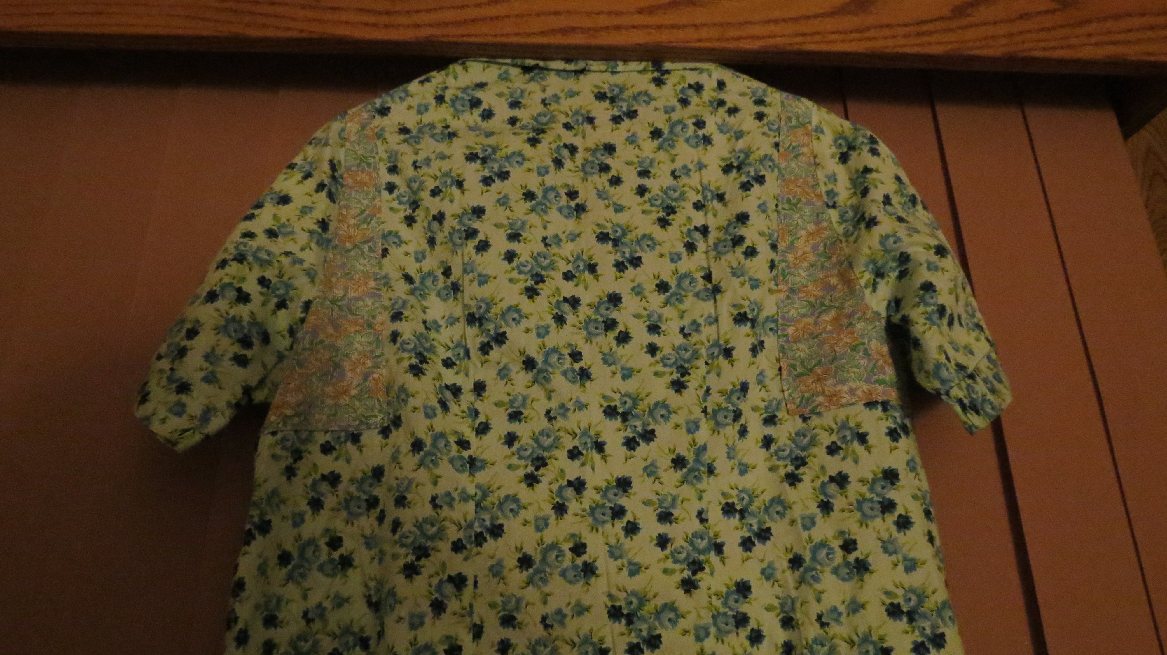 Not as elegant as the item posted yesterday, but wonderful in its own way.  This sturdy cotton housecoat with a cheery floral print was just an everyday item, it has survived all these years primarily due to it’s quality fabric and solid construction.