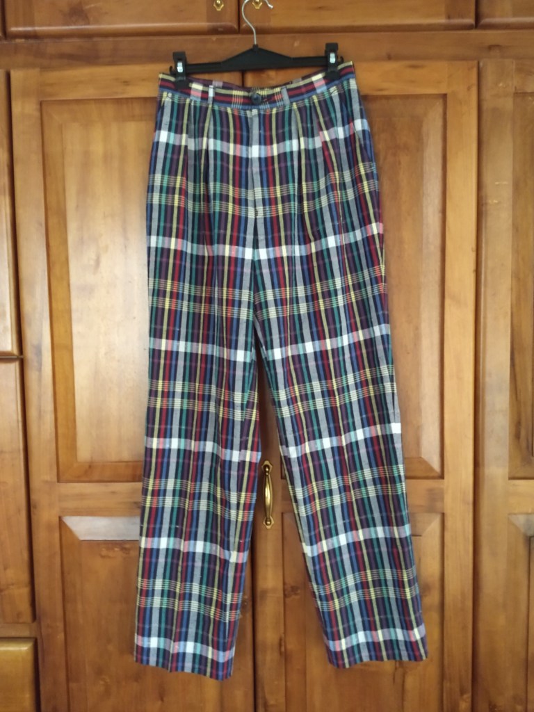 When it rains it pours. I’d been snooping for some well-fitting, stylish true vintage pants and the Universe delivered. Another pair of tailored slacks made very similarly to the ones shown from my last expedition but these set the bar a notch higher. In linen, with a full lining and beautifully-made.