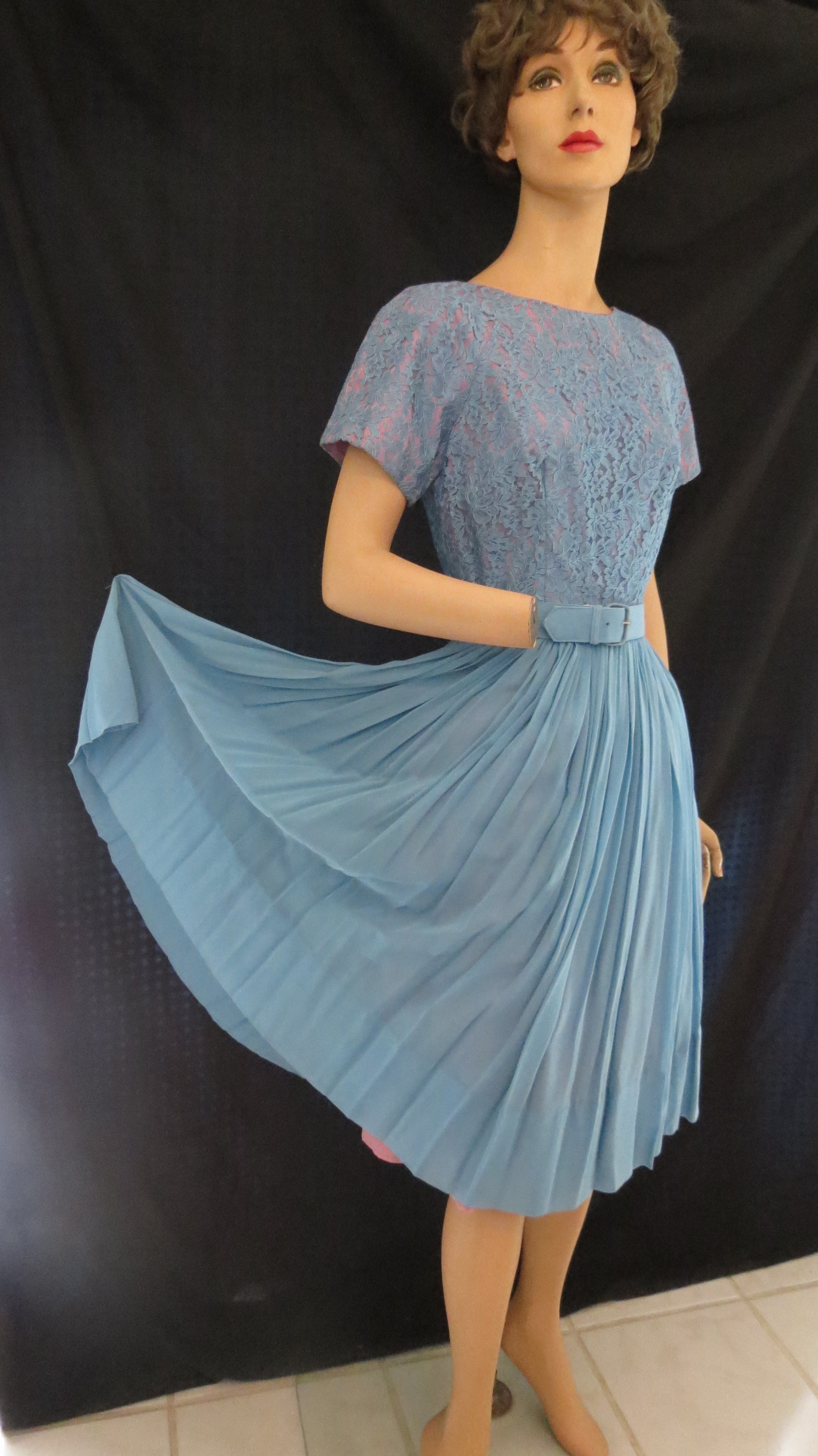 A sheer layer over plain liner, and fitted drop-waist hourglass shape – the colors are for Fall but work beautifully in Spring and Summer for someone with the right coloring. It reminds me of a dress that Grace Kelly wore in the Alfred Hitchcock movie, Rear Window in 1954. Just a fabulous film – highly recommended.