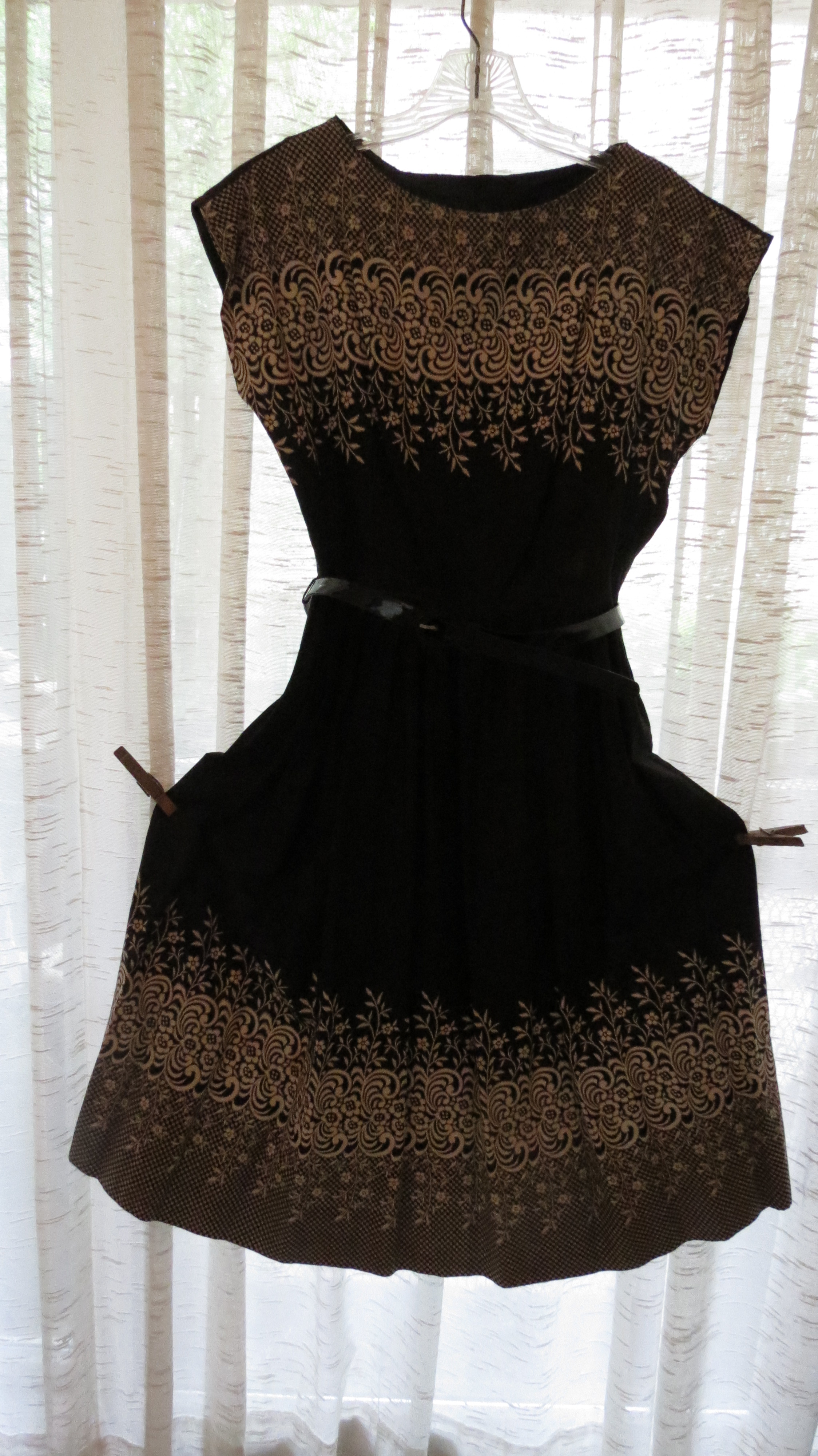 I love the styling of this frock, with its wasp waist, free hips, cap sleeves and delicate neckline that really enhance the figure. Madge’s fuller measurements give it the right “va-voom” fit. I also like the peek-a-boo effect of the white band below the waistline.