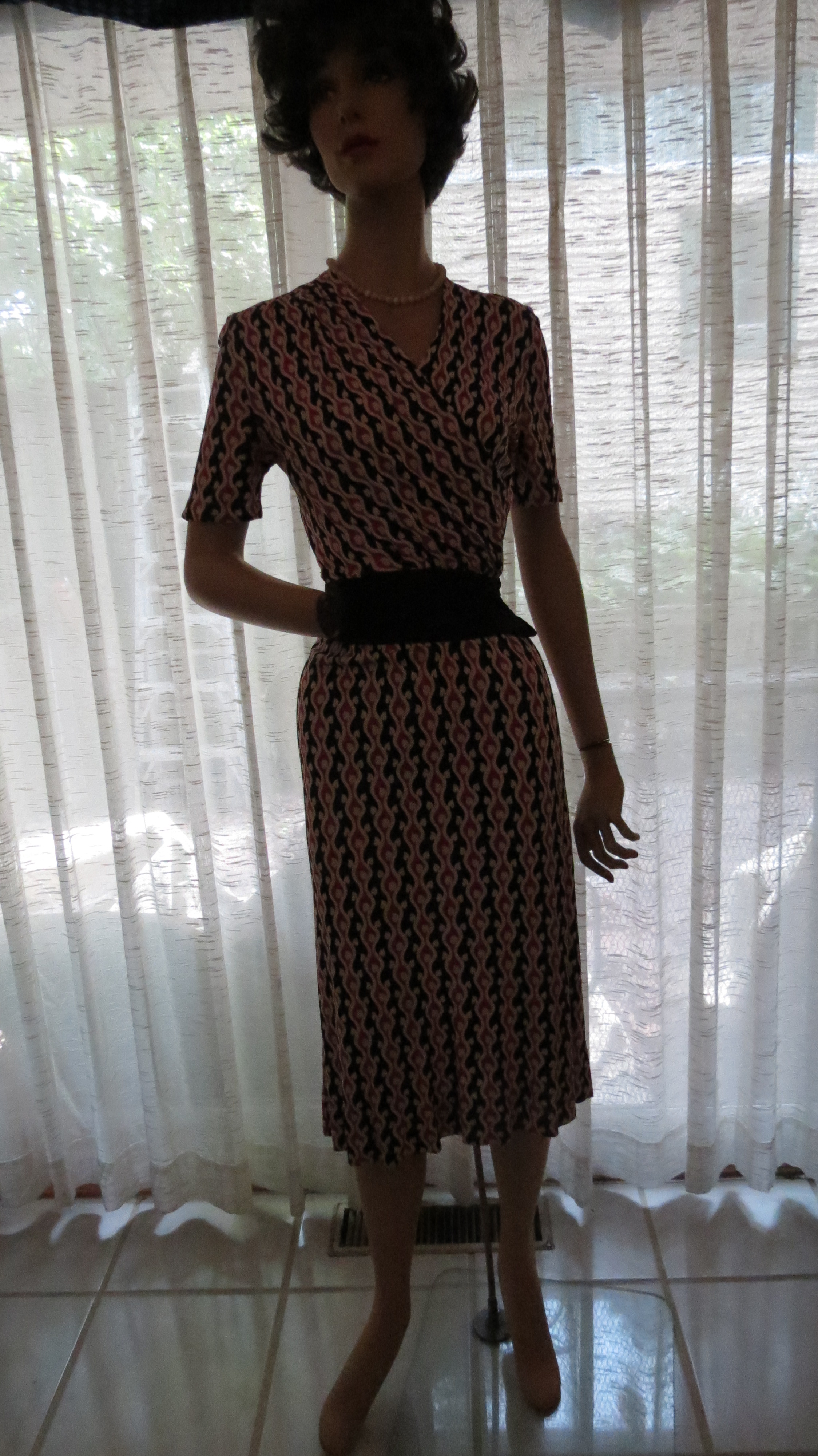 Nylon takes on color very easily, so it can be dyed. The slip on the left was probably tie-dyed in the 60s. The black slip has simple, very elegant small embroidery on the bodice, which is covered by a sheer layer of fabric. The red slip is made almost like a dress with a plain red lining and overall lace on top, a side zipper and hem slit. I showed it a few days ago. The two white slips show a variation in length (very important) and plain & fancy details. It’s nice to have beautiful decorated ones and also plain ones, to wear under sheer dresses.