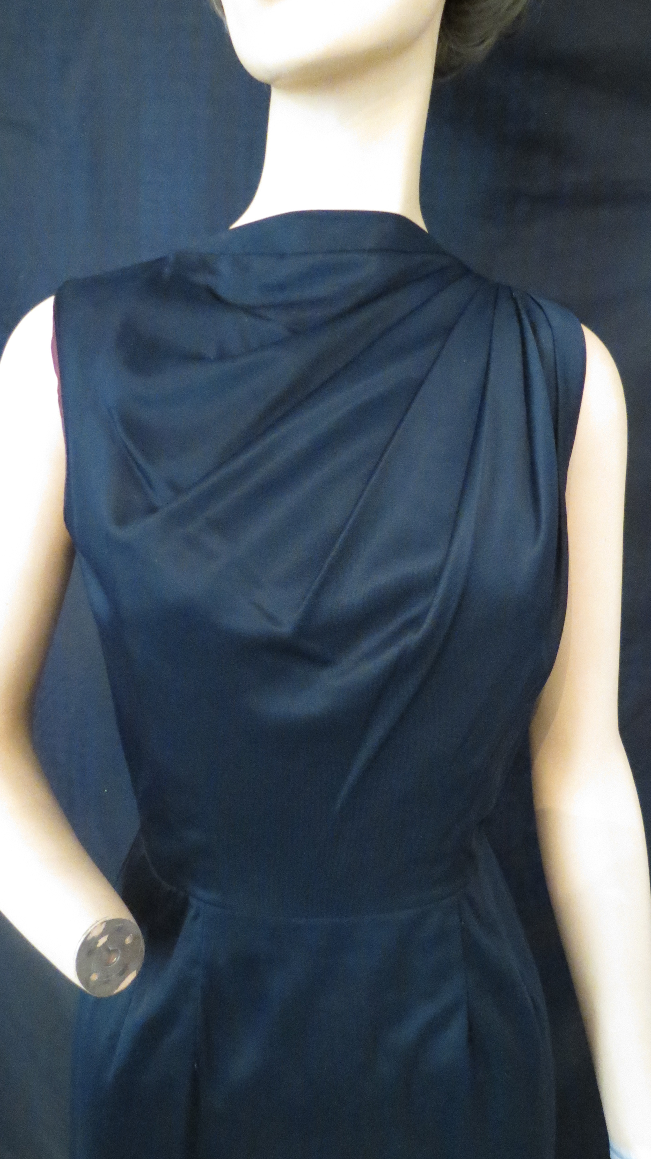 At first I couldn’t decide between the front and back, but when put on Madge, who is a perfectly proportioned modern size 6, it is obvious that the cowl effect fits best in the front and is an elegant style. Depending on how it fits, could also be worn in the reverse. It’s always fun to solve the mysteries . . . . . . . . . . . . . . . . . . . . . . . . .